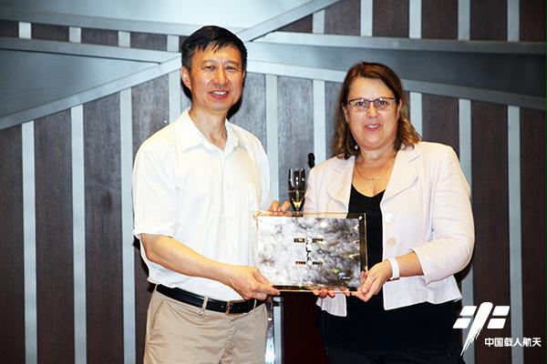 图3:中国载人航天工程办公室主任王兆耀向代表赠送礼物(张杰 摄)